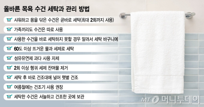 면역력이 약한 사람일수록 매번 깨끗하게 세탁한 수건을 쓰는 것이 중요하다.